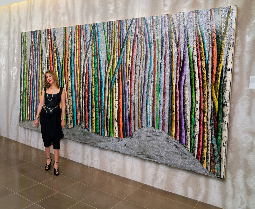 Shabat may long to be free, but in that longing for freedom she also finds a deep and intense love for children. It’s impossible to miss the shapes and forms of children throughout her work, usually appearing faceless. “They are present all the time,” she said, “the children in my paintings.” It seems like a bit of a paradox at first, to paint persistently of liberation, but then focus simultaneously on the presence of children. It isn’t that she paints them to point out that they are a burden; it’s the opposite. “It’s love,” she said, “and they are very intriguing. Children have their own mind, and that’s how I live.”
