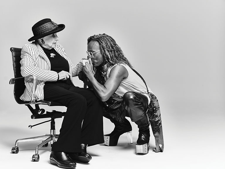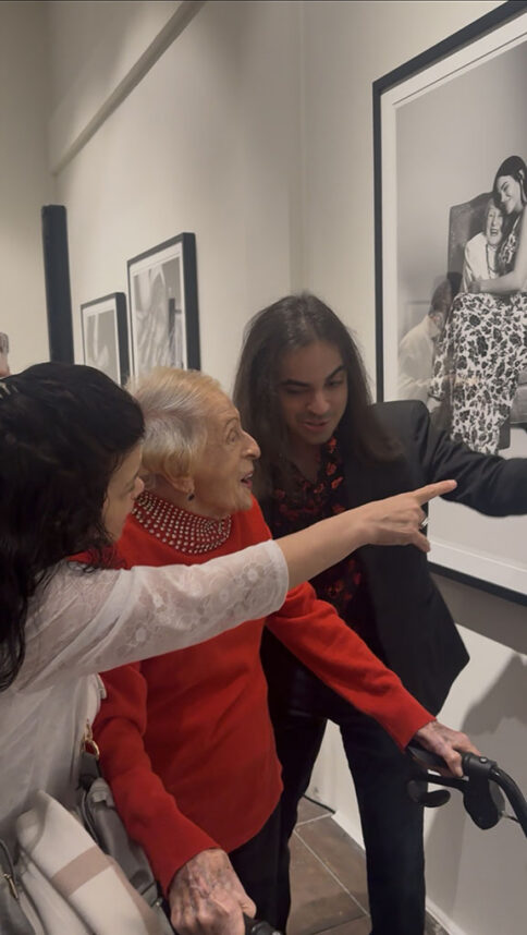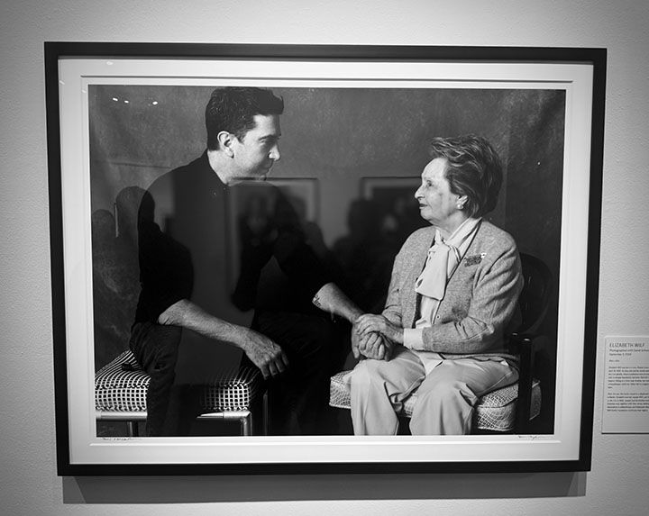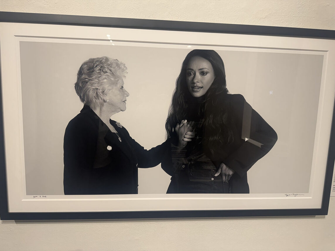 An hour earlier, Igelfeld arrived at the exhibit with her daughter and grandson. She was wearing a bright red sweater that stood out against the gallery’s white walls. With her family members, she steadily moved towards the large black-and-white photo of her with actress Jenna Dewan on the wall. She’s seated on a plush chair with Dewan, in a flower print dress, on her lap. When Igelfeld saw her portrait for the first time, she broke into a wide smile, looked at her daughter and grandson then back to the photograph yet again.