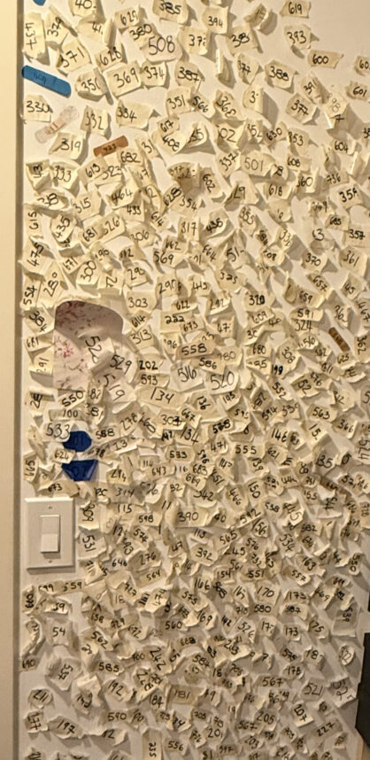 In solidarity with her friend, Jacqueline began wearing a small piece of tape each morning starting on the 100th day of Hersh’s captivity. She never missed a single day. On about day 130, I started as well. It became part of our morning ritual. I would make coffee and feed the dogs. She would write our numbers and remind me to put mine on.