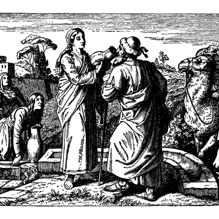 I imagine Rebecca when she arrived in Canaan, at the end of Genesis 24. Abraham’s servant Eliezer had gone up to the homeland in Paddan Aram to arrange a bride for Abraham’s son, Isaac. He found Rebecca, a distant cousin, and brought Rebecca home with him.