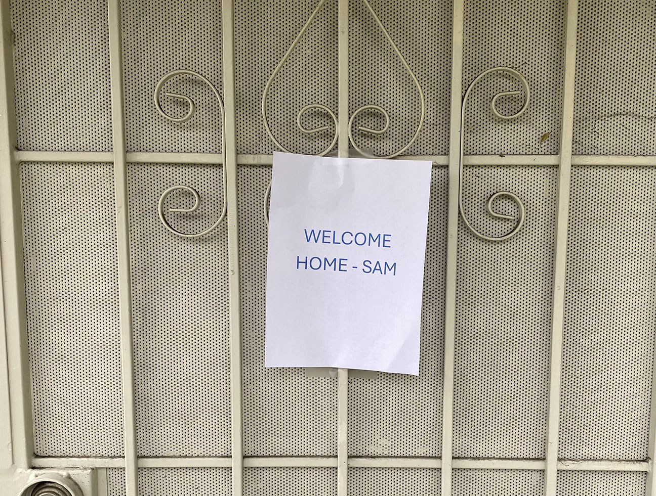 I placed a “Welcome Home, Sam” sign on my front door on Sunday. Sam arrived around 10:30 pm. I waited until morning to unpack Sam. Then I put him back in the garage for a long snooze until our next trip. Japan.