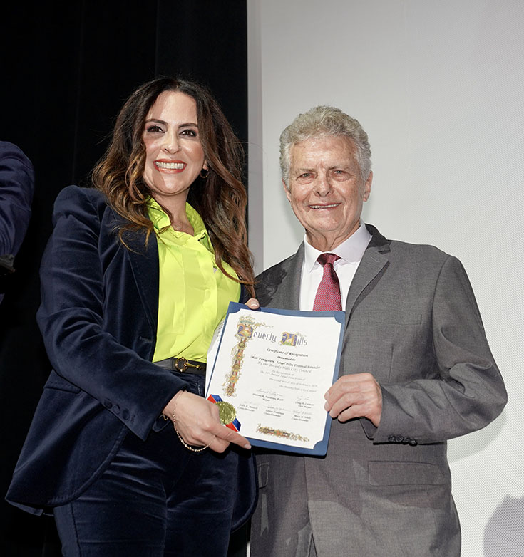 Sharona Nazarian, Mayor of Beverly Hills, presented Fenigstein and the IFF with a Letter of Recognition from the Beverly Hills City Council.