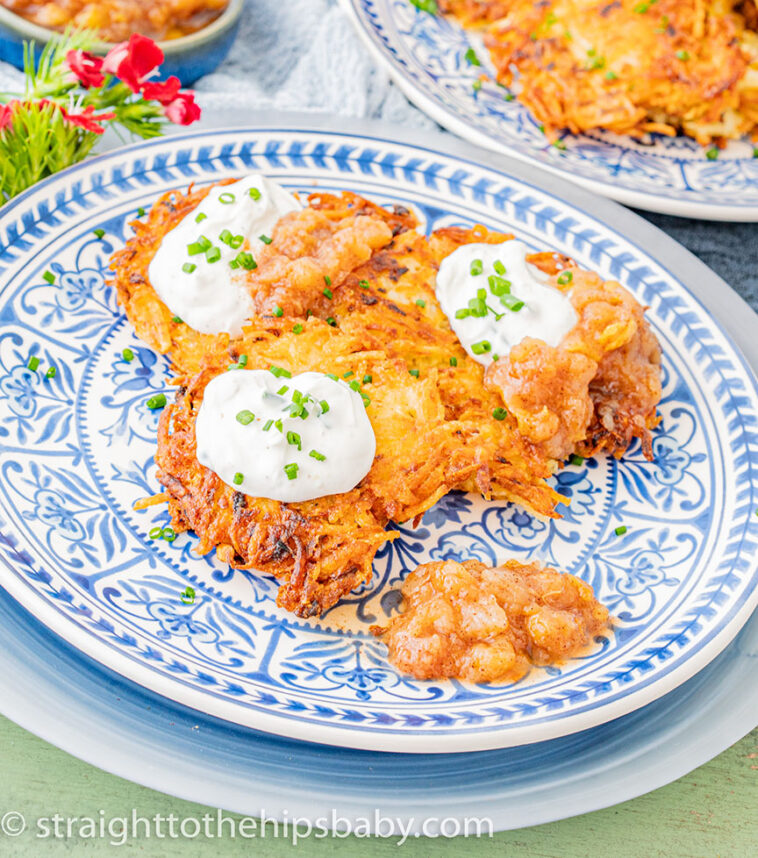 Jessie-Sierra Ross, founder Straight to the Hips, Baby, and author of “Seasons Around the Table,” likes traditional potato latkes, but modernized the sour cream and applesauce toppings.