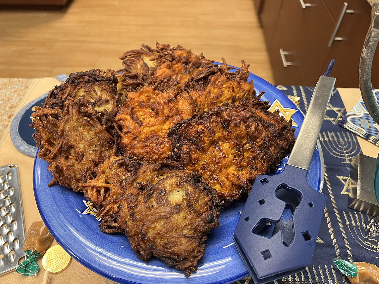 While latkes are traditionally pan-fried in oil to honor the miracle of the Hanukkah oil, Stein’s recipe uses air-frying for a lighter and healthier approach.