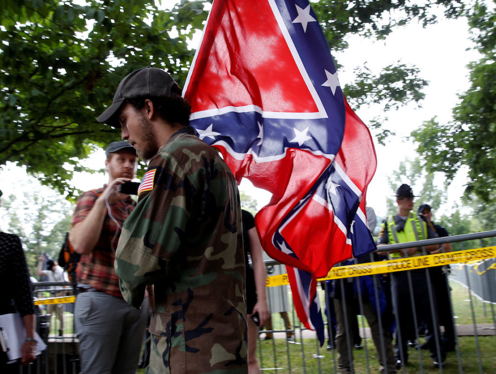 At a news conference Tuesday in New York, Trump doubled down on his claim that there was “blame on both sides,” equating combative left-wing counterprotesters with the bands of neo-Nazis and white supremacists who were demonstrating against the removal of a statue of Confederate Gen. Robert E. Lee.