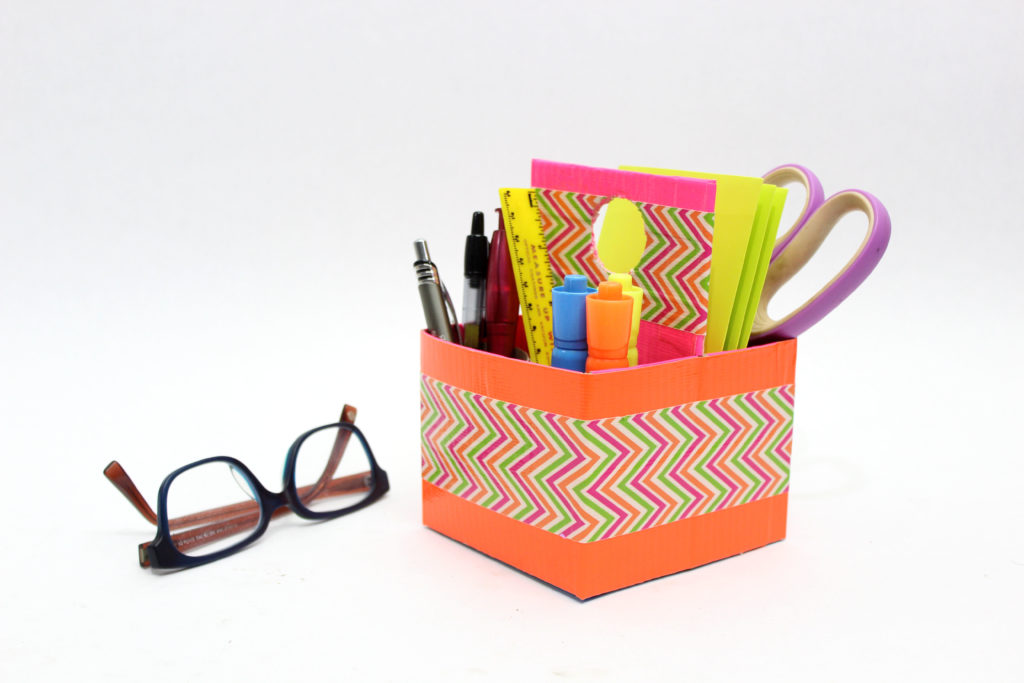 As if new year’s dieting isn’t already making you cranky enough, January has been designated Get Organized Month by the National Association of Professional Organizers. Yippee! Don’t let the call to organize stress you out, though. You can start small, like making this handy desktop organizer out of duct tape and two used boxes. It’s a fun, do-it-yourself project that will take your mind off of all the clutter in your home — and that cake in the refrigerator.