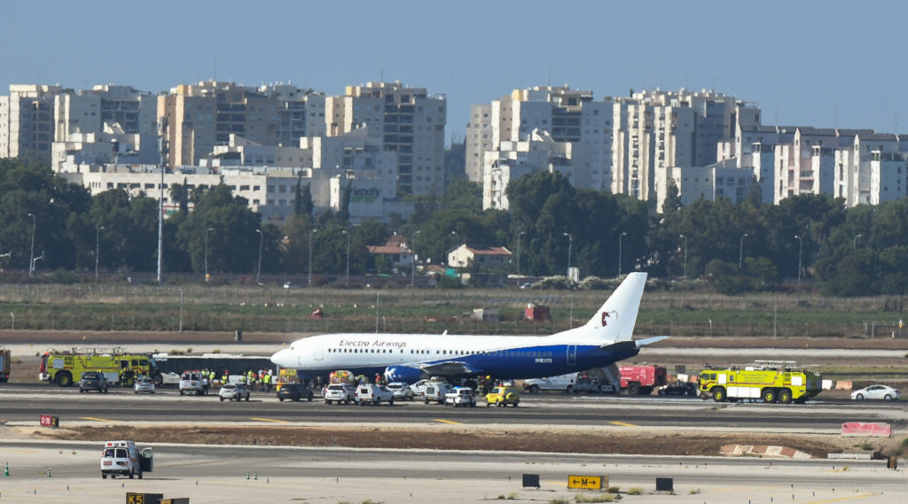 Israelis watched Monday afternoon on live television as the Electra Airways 737 jet flew over the airport’s control tower to verify the flat tire and then headed for the runway.