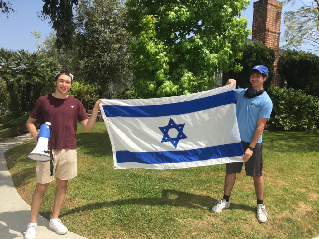 A parade of cars decorated with Israeli flags and blue-and-white balloons drove through the residential streets and Head of School Ari Segal stood in the flatbed of a pickup truck as it inched down Beverly Drive. Shalhevet students, together with residents, stood on street corners cheering.