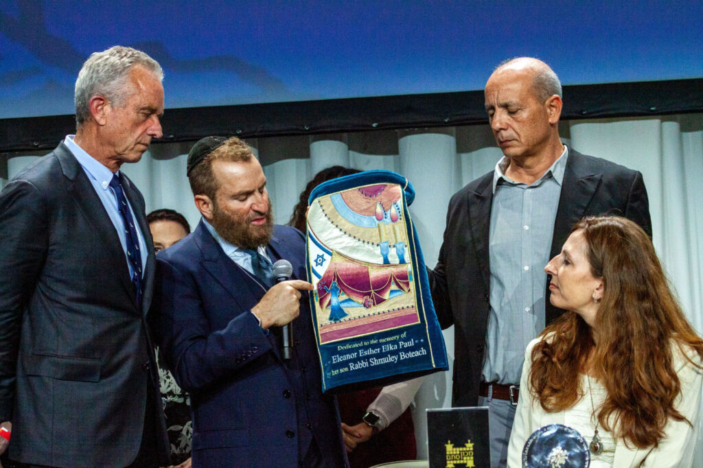 Before Shani’s body was found by the IDF, he flew us to New York City where he arranged a Torah dedication at the famous “Glass House” where thousands came to listen to his friend Robert F. Kennedy, Jr and dedicate a Torah to the memory of Shani, Bobby’s father RFK and Rabbi Shmuley’s mother Eleanor, whom he had just lost. Dana White, the first ever woman of color to serve as global spokesman for the Pentagon and US Military worldwide, also addressed the gathering, placing a Magen David around her neck which she, as a devout Christian, has never since removed.