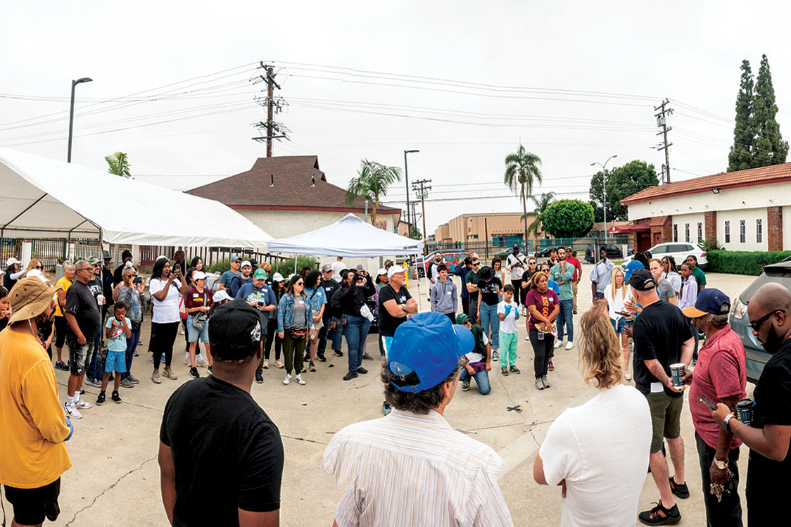 When I arrived around 1 p.m., the volunteers were lining up for a barbecue lunch, which consisted of chicken, beans, veggies and fruit. Afterwards, we went back to work, and I helped with removing old paint off the walls. Around this time, I caught up with Lakeisha White, principal of Compton Academy of Technology and Innovation. She told me she was grateful to all those who came out to paint the new school’s colors — orange and green — on its walls.