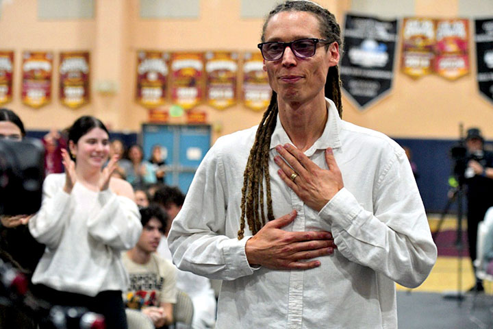 At this year’s surprise ceremonies, Milken Family Foundation Executive Vice President Richard Sandler, joined by BJE Chief Executive Officer Miriam Heller Stern, announced the recipients in front of their colleagues and students.