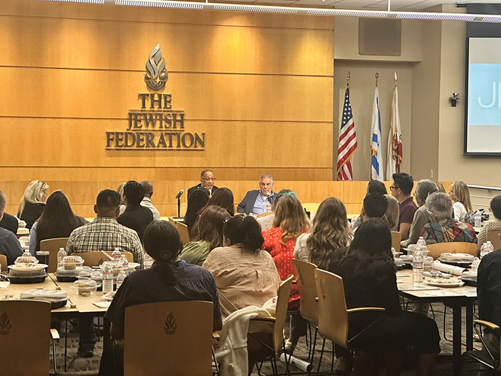 It was the first teacher symposium since the passage of AB 715, California’s new bill designed to help protect students from antisemitism and hate in K–12 schools. The program brought together more than 50 educators for a day of cross-community learning and dialogue, highlighting partnerships with Spill the Honey, a Black-Jewish alliance; Challah and Soul, which also seeks to foster relations between Jews and African Americans; and Jewish Federation Los Angeles.