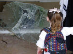 On May 6 in the southern Israeli city of Ashdod, an Israeli child looks at shattered glass at the entrance to a building damaged by...